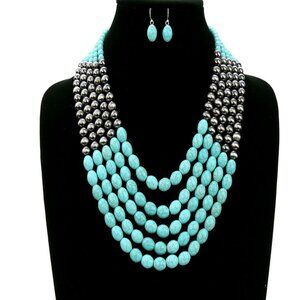 The Neva Stone & Navajo Beaded Turquoise Silver Necklace & Earrings SET NEW
