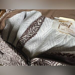 Rare Vintage Women's Wool Blend Herringbone Brown & Cream Skirt W/buttons