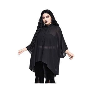 Embrace Your Dark Elegance with Our Plus Size Gothic-Inspired Sheer Poncho Top