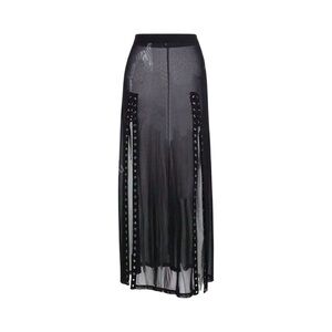 Gothic Gypsy Coachella 12/XL Black Sheer Wide-Mesh skirt lace up wrap up