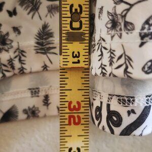 Unique black-on-white allover nature and animal print featuring wolves, snakes, birds, skulls, trees, and flowers