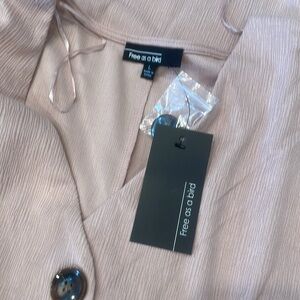 NWT casual peach Jumpsuit size large. Waist tie and v neck with bottons