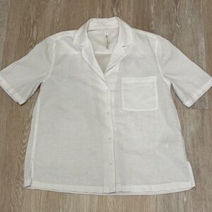 The Abercrombie & Fitch Distressed 1/4 Zip Muscle Sweatshirt in white and grey is a classic and preppy women's activewear piece. This pullover sweatshirt features a solid pattern with long sleeves and a 1/4 zip closure, making it suitable for casual occasions. The garment care is machine washable, and it includes the brand's logo accents. The size is women's L, and it is designed for regular sizing with a pullover style. Perfect for those who appreciate a timeless and stylish look. Holes in the shoulder/sleeve area are part of the intentional distressing of the sweatshirt (see pics). Sweatshirt is in excellent, pre-loved condition!