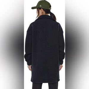 Crafted in soft and cozy Polartec® Sherpa fabric, the Valby coat is the ideal layer to wear on chilly fall evenings. This mid-length drop shoulder style features a soft polyester lining, two zippered front pockets and a hidden button closure on the front. Its elastic storm cuffs protect you from the cold wind and its interior pocket keeps your essentials nice and secure. Details: • Designed in Montreal, made in China • Mid-length style • Drop shoulder cut • Hidden button closure • Elastic cuffs • Two zippered front pockets • Interior zippered pocket Materials: • Main fabric: 100% polyester Polartec® Sherpa fabric • Lining: 100 % polyester Care: • Machine cold wash • Do not bleach • Tumble dry low • Do not iron Some light sign of wear on the fabric just not as fluffy as it was first but not hole, marks…