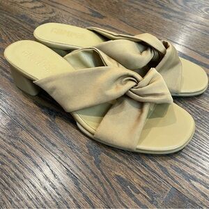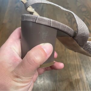 MM LAFLEUR Irene Rosy Taupe Croc Embossed Leather Slingback Block Heels