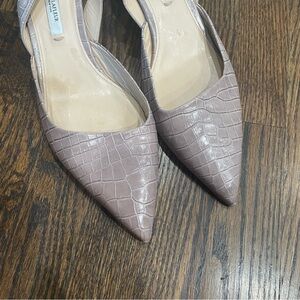 These MM Lafleur shoes are in good used condition. Pointed toe slingbacks. Croc embossed leather. Rosy taupe color. Size 42, US 11 according to their size chart.
