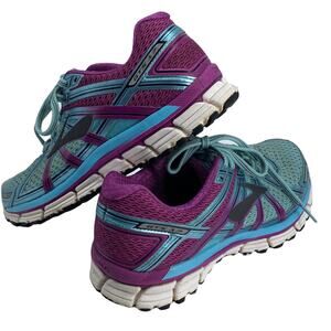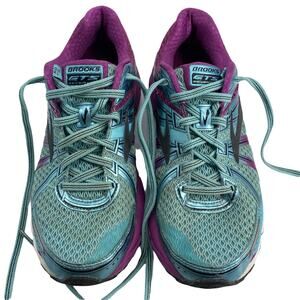 Women's Size 8M BROOKS GTS Seventeen Running Shoes. Purple and Teal. Good pre-owned condition with signs of use as shown in the photos.