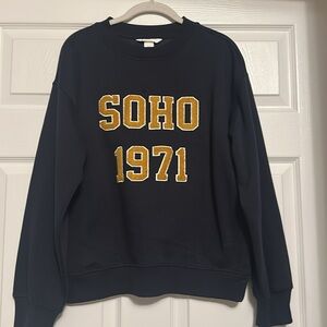 Brand new with tags H & M navy blue SOHO 1971. Classic navy blue sweatshirt with ribbed neckline, reads SOHO 1971. Ideal for everyday comfort. OFFERS ARE WELCOME!