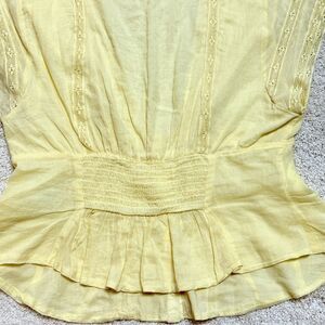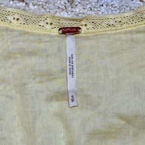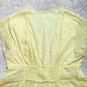 NWOT Free People Yellow V Neck Button Up Ruched Lace Flutter Sleeve Blouse Top S