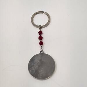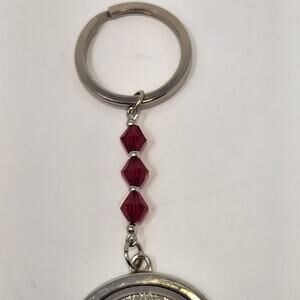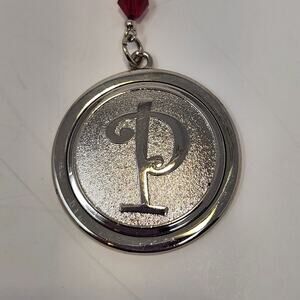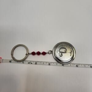 Initial Letter P Round Keychain Charm Silver Tone Red Crystal Beads Chunky