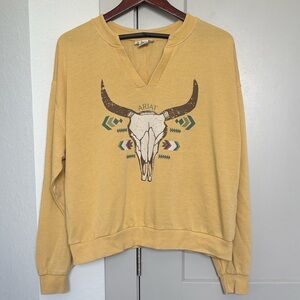 ARIAT STEER HEAD YELLOW PULLOVER WOMENS LARGE