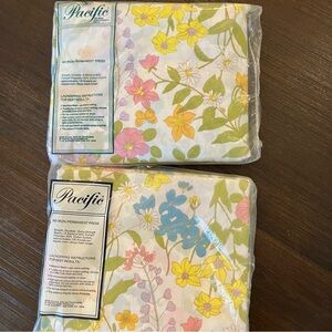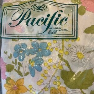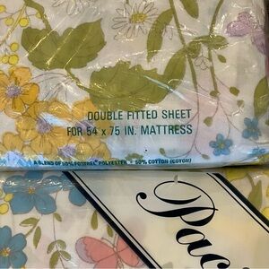 Adorable, cheery fitted and flat sheets for a full size bed! Still in the original packaging! All the fabric info, size, and care instructions are pictured on the package.