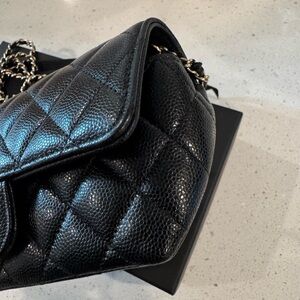 CHANEL classic black caviar and gold hardware sunglasses case crossbody bag