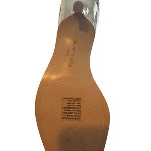 Chic metallic sandals with crisscross straps. Perfect for adding shine to any outfit.