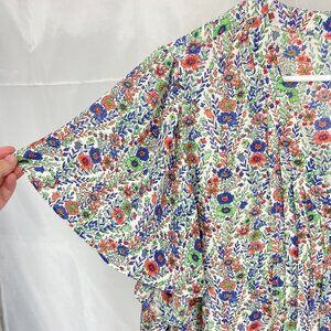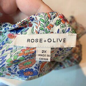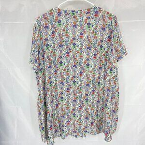 Rose & Olive Women 2X Floral Blouse Tunic Top Pleated Short Sleeve Flowy Shirt