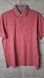 Classic red polo with subtle stripes. Features buttoned collar. Iconic logo on chest.