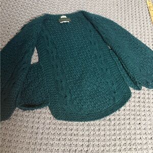 Elegant CULLINANE cardigan in rich teal. Features intricate knit design. 100% Wool Vintage