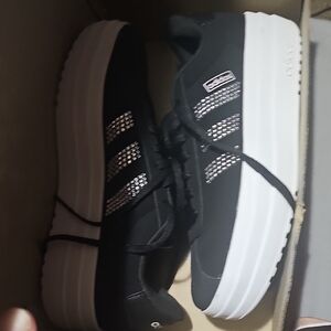 Chic Adidas platform shoes in black and white. Features silver embellishments for added style. Brand New Never Worn, Women's Size 7