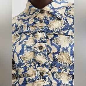 Ganni Snakeskin Print Crinkle Blouse