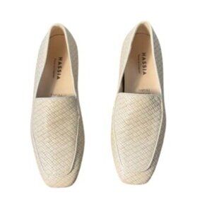 Hassia Womens Comfort Fit Woven Leather Loafers UK Size 3.5 Beige Slip-On Shoes