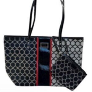 Great tote bag with coin purse. Black & creamish grey with a little touch of red. Very spacious. NWOT.