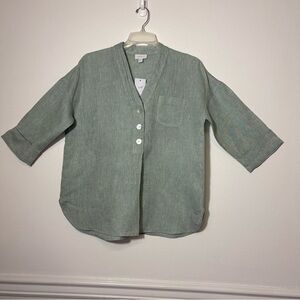 NWT J.Jill Pure Jill 100% Linen 3 Button Front Tunic Blouse Sage Green Sz MP