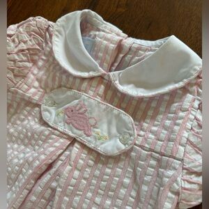 Little English Smocked Seersucker Bunny Dress Peter Pan Collar Girls 4T Easter