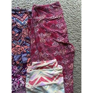 LuLaRoe LLR Lot Of 5 Ankle Leggings Sz ONE SIZE Pinks, Reds & Pastels Patterned