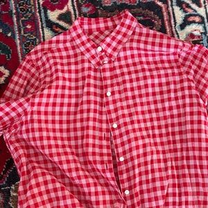 Stylish gingham button down shirts by J. Crew. Features navy, pink, and red check patterns. Perfect for casual wear. Very soft, tags cut off.