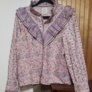 really nice open front sweater cardigan ,earthy tones blue and tans,fringe at bottom 100 per cotton xxl,soft cozy loungewear,23in pit to pit,34in length,work office,fall,winter
