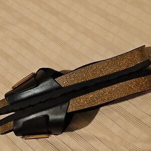 Stockholm Design Group Genuine Leather Black Big Buckle Cork Bed Sandals Size 39