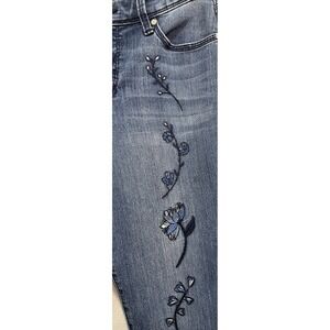 Bandolino Jeans Women's Size 6 Blue Denim Embroidered Floral Lisbeth Ankle Zip