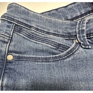 The Bandolino Jeans Women's Size 6 in Blue Denim is a stylish and versatile addition to any woman's wardrobe. With an embroidered floral design and ankle zip closure, these jeans offer a trendy and feminine look. Made from a comfortable cotton blend with stretch for added flexibility, they feature a 5-pocket design and a regular fit for all-day wear. Perfect for any season, these jeans combine fashion and functionality effortlessly, making them a must-have for any casual outfit.