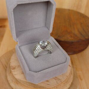 Vintage Sterling Silver Faux Diamond Statement Ring, Sz 6.75