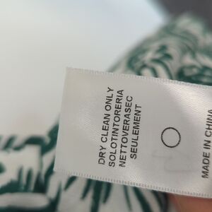 Description: Is lined to thigh area. Double straps, low plunging v-neck, open low cut back with criss cross straps, pull over, thin waist tie, side slit at hem, asymmetrical hem (longer at the sides). 100 poly. Dry clean.