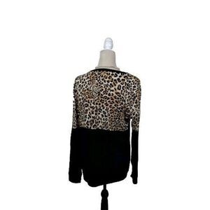 Womens XL Pullover Top Black Leopard Print Long Sleeve Crew Neck