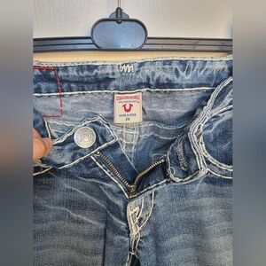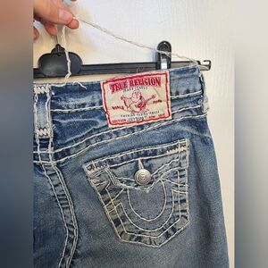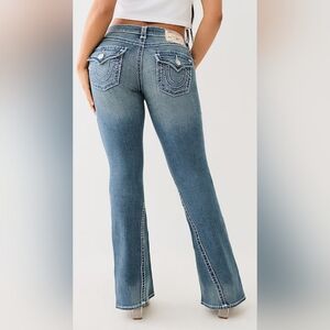Highly sought after Y2K True Religion Low Rise Joey Super T Classic boot cut jeans with signature stitching. Perfect for casual wear. Durable and stylish. Some imperfections in threading as pictured from wear and tear, but still in great shape otherwise. These are a fantastic high quality pair of jeans from the Y2K era.
