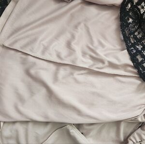 This lace dress is see- through with a full nude fabric layer under along with a nude lining.