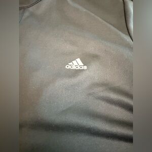 Sleek black jacket by Adidas. Features a minimalist design with subtle logo detail. Full zip with 2 snaps at bottom and 2 snaps at top .