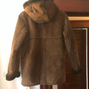 Stylish brown suede jacket featuring unique stitch detailing. Perfect for a chic look.