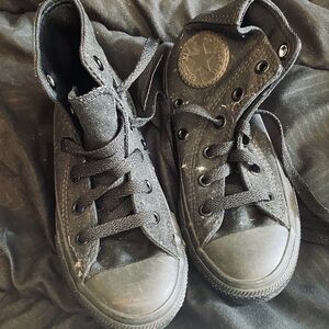 Stylish black high-tops for kids. Iconic Converse design. Great for casual wear.