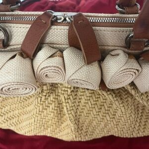 Chic authentic Valentino raffia bag with unique rose detailing. Perfect for stylish outings. Condition as pictured and includes dust bag.
