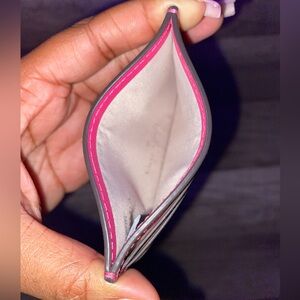 hot pink card case by Kate Spade :) has 6 slots for cards and a little pocket for cash