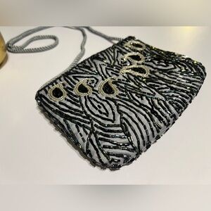 This stunning black and gray beaded bag is perfect for any occasion. Its intricate design adds a touch of elegance to your outfit.