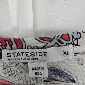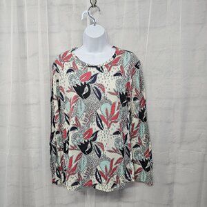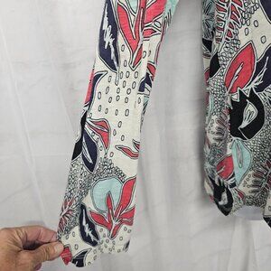 Stateside Blue Red Long Sleeve Tee Shirt Floral Artsy Boho XL