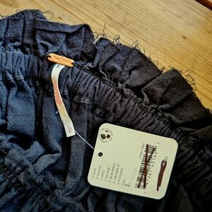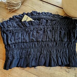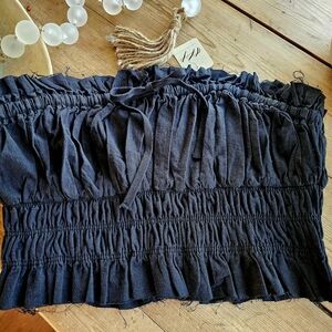 beautiful ruched strapless cropped top. it is a deeper black than it appears in the pictures. has drawstring across the top/front to adjust sizing. very nice, thick linen fabric. NWT