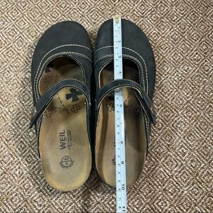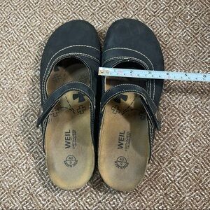 Dr Andrew Weil Clog Mules Womens Sz US 9 EU 40 Black Suede Leather Floral Boho