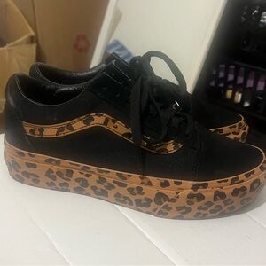 Vans Women's Old Skool Platform Sneakers - Black and Leopard Print