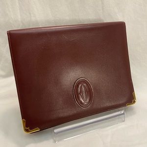 Cartier Bordeaux Leather Must de Cartier A5 Document Case Clutch Bag.