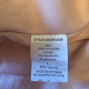Stylish peach midi dress with floral design. Features a wrap style and short sleeves. Perfect for any event.